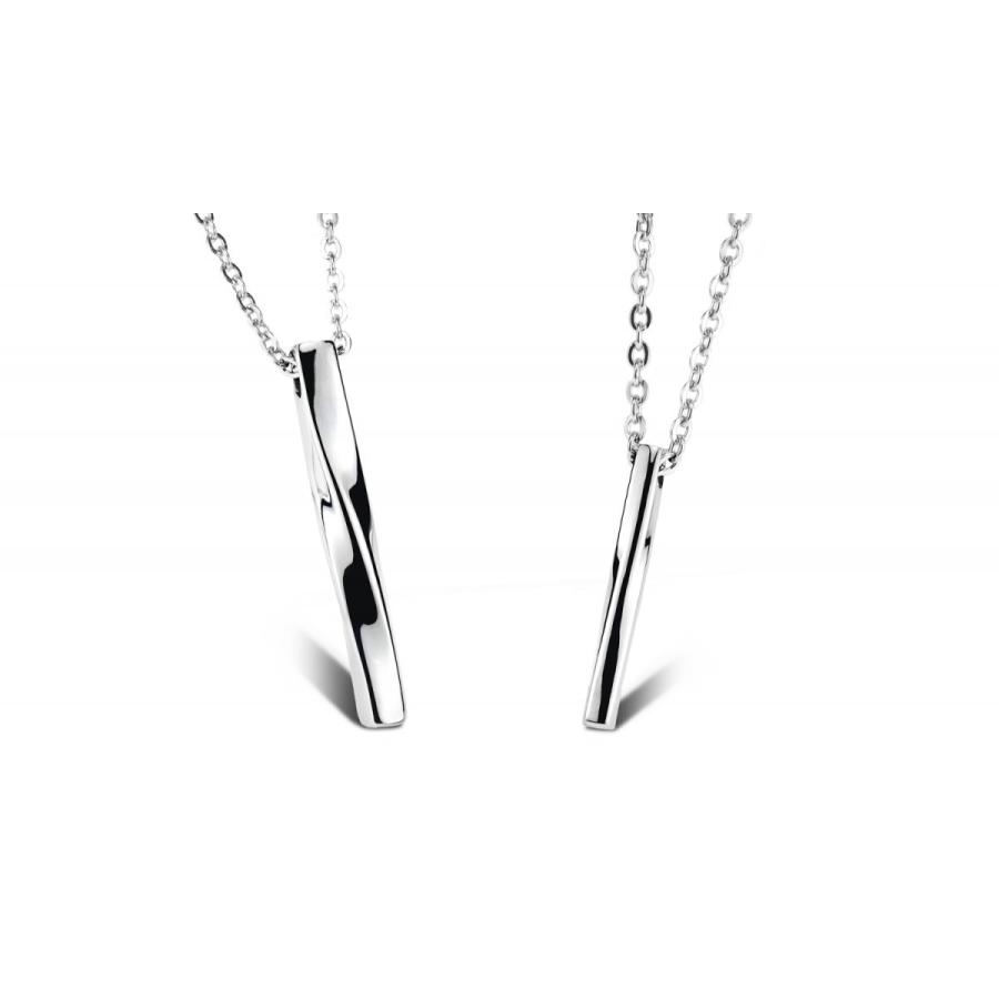 ペアネックレス ツイスト バー シルバー サージカルステンレス 低アレルギー シンプル 送料無料 レディース メンズ ギフト オソロイ プレゼント カジュアル 初回限定