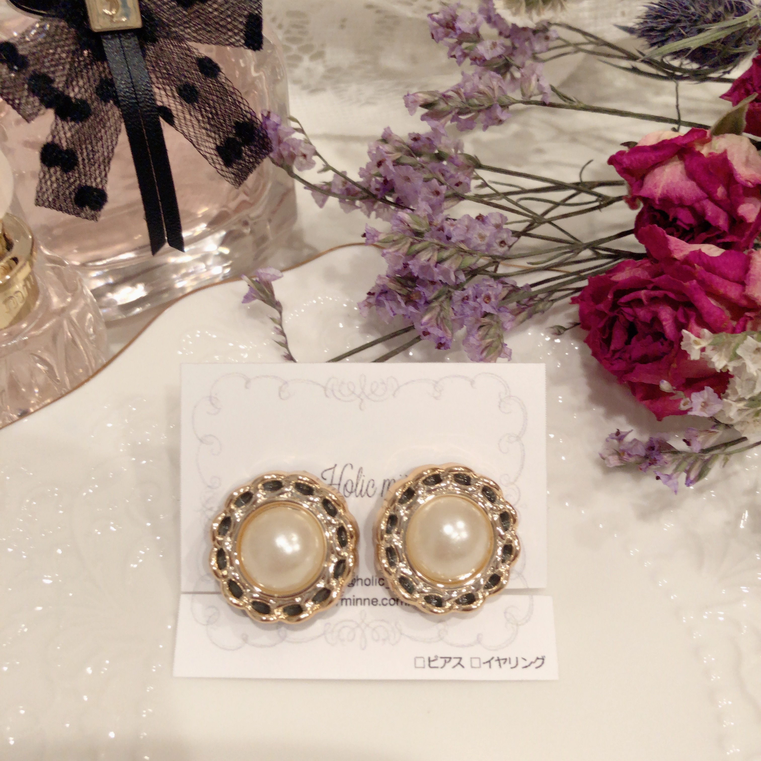 Vintique フレームゴールド パール ピアス Noir De Poupee ノワール ド プーペ の通販 アイルミネ